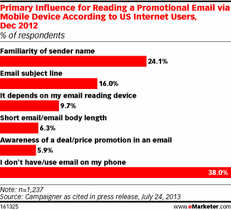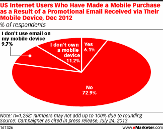 手机又为邮件营销加入了新的不定因素。还无法确定在手机上打开的邮件是否能提升销量。Campaigner调查发现只有6.1%的受访者确实在手机上读过促销邮件之后产生了购买行为。